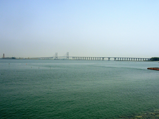 こんにちは。いつも会社でうちの奥さんがお世話になってます。橋の名前ですが、西海大橋(ソヘ デキョ)といいます。この高速は制限速度が110キロっていうのが速くていいですよね。でもみんな130キロくらいで走ってるけど・・・